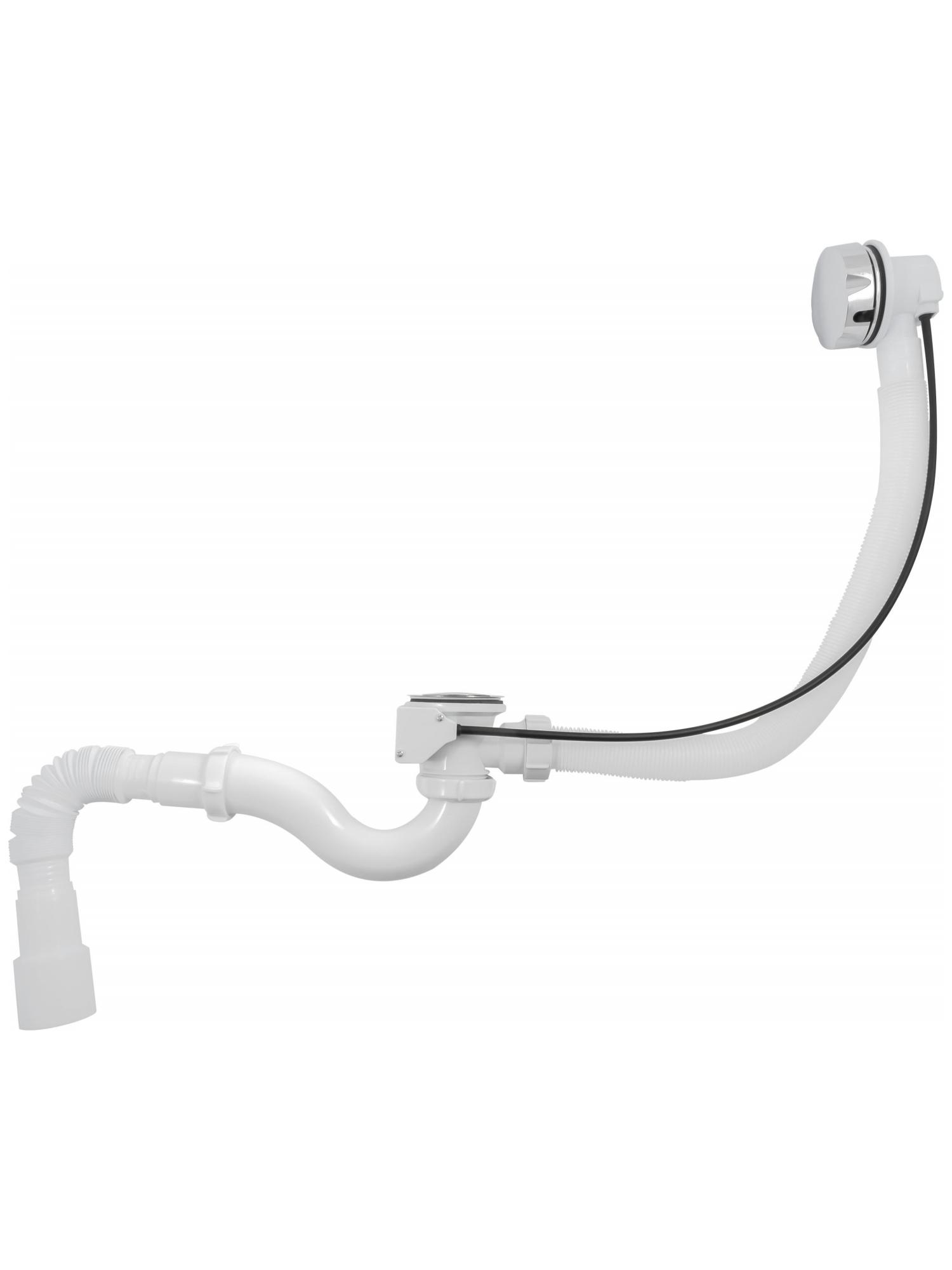 —(V322) AQUANT Сифон для ванны с переливом полуавтоматом с г.т 40х40/50 белый (1/18)