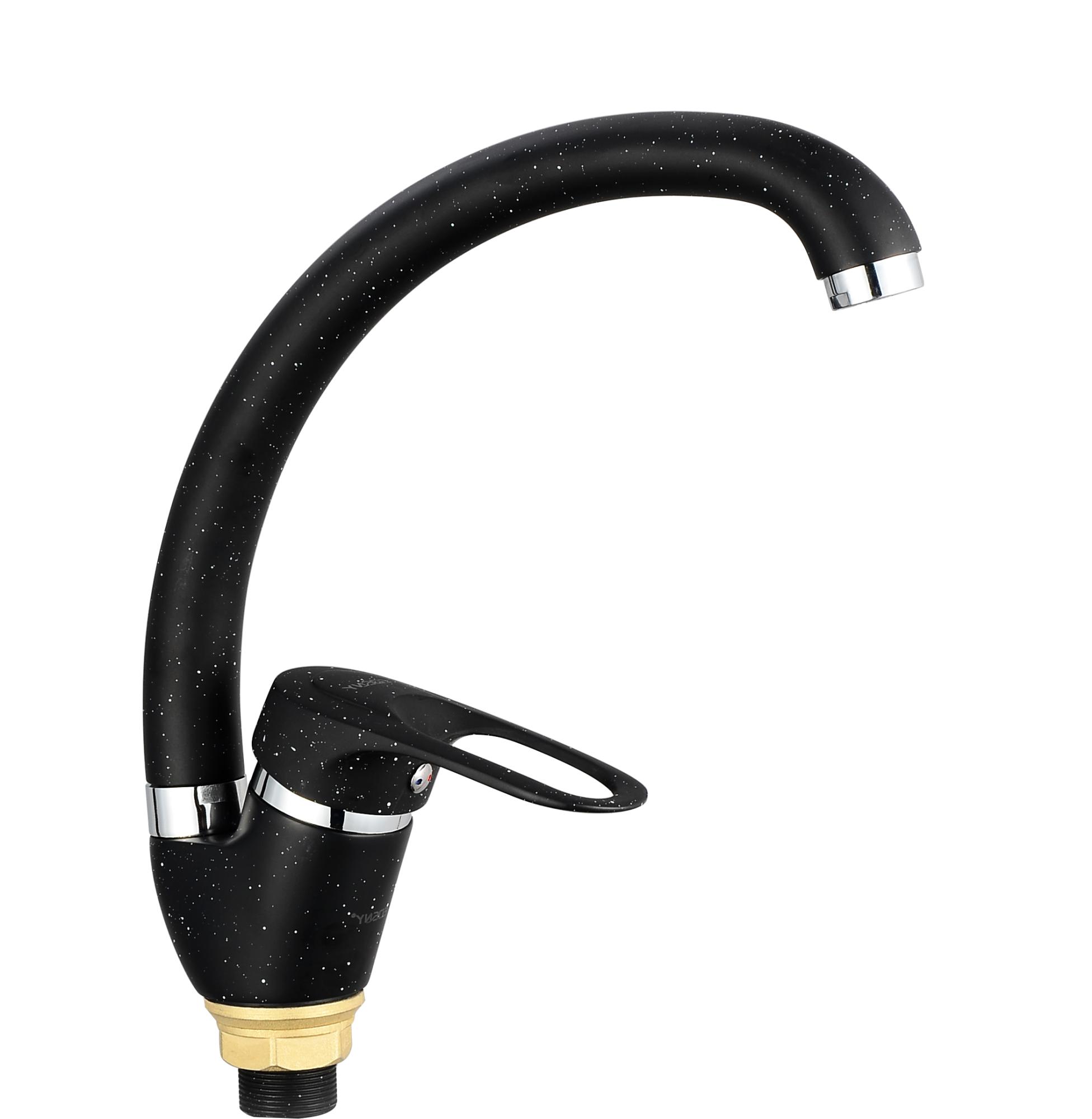 —РАСПРОДАЖА! (E3719-5) EDENY Кухонный смеситель. Черный. На большой гайке. Силумин (1/12)